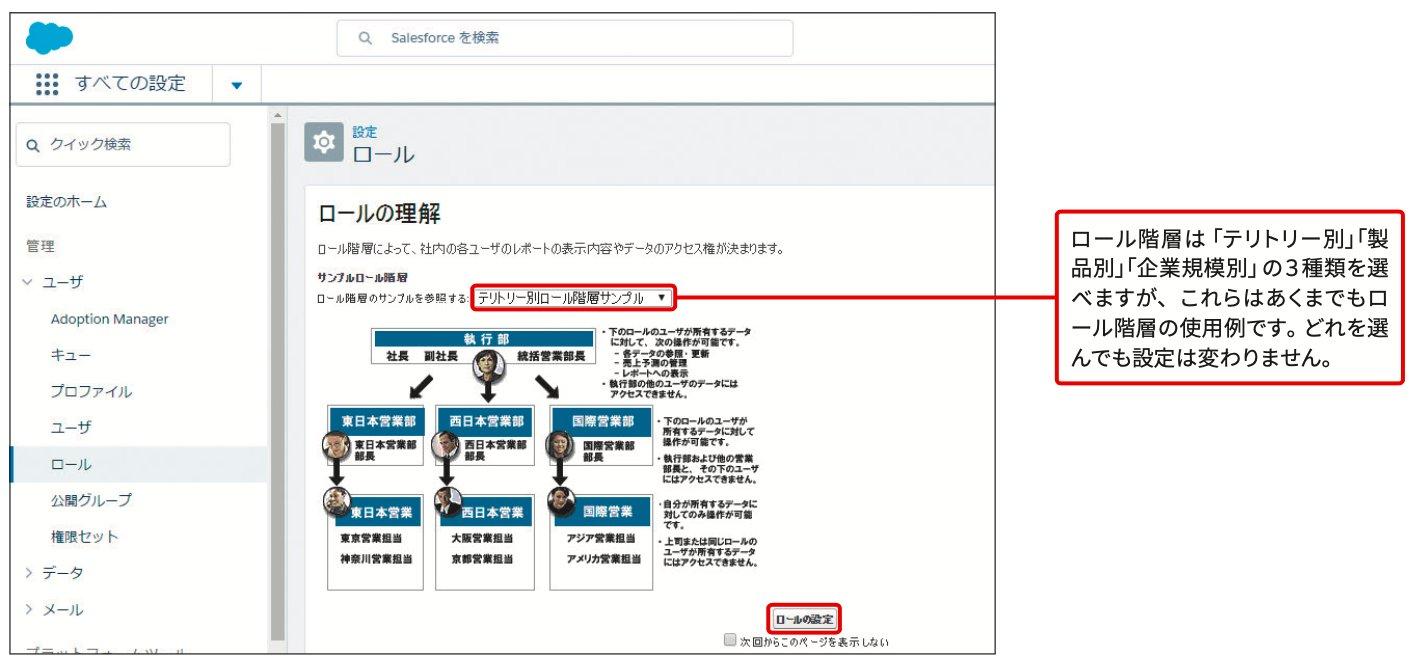 Salesforce ではデータのアクセス権を設定するために “ロール” を使用します。