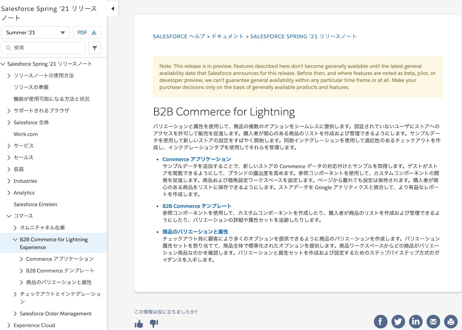 - Salesforce リリースノーツ(Lightningコマース含む)