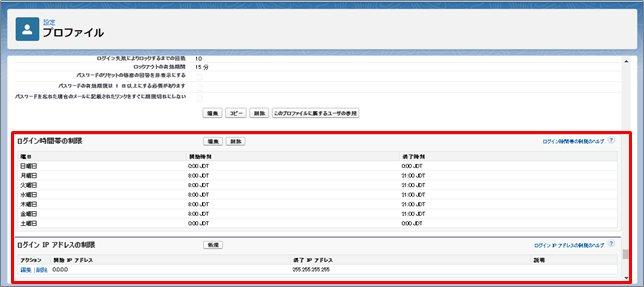 また、ログインIPアドレスでは、社内で定められた範囲のIPアドレスのみ利用させる、自宅ではログインできないようにしたいといった場合に設定します。