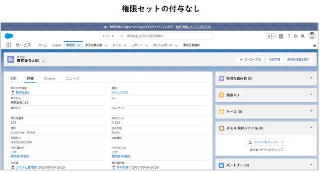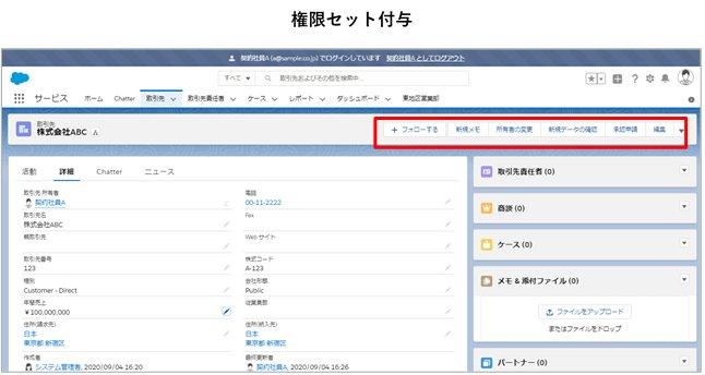 権限セットを付与したことで、契約社員Aさんは取引先に関しては正社員と同じ権限で、取引先情報の編集ができるようになりました。