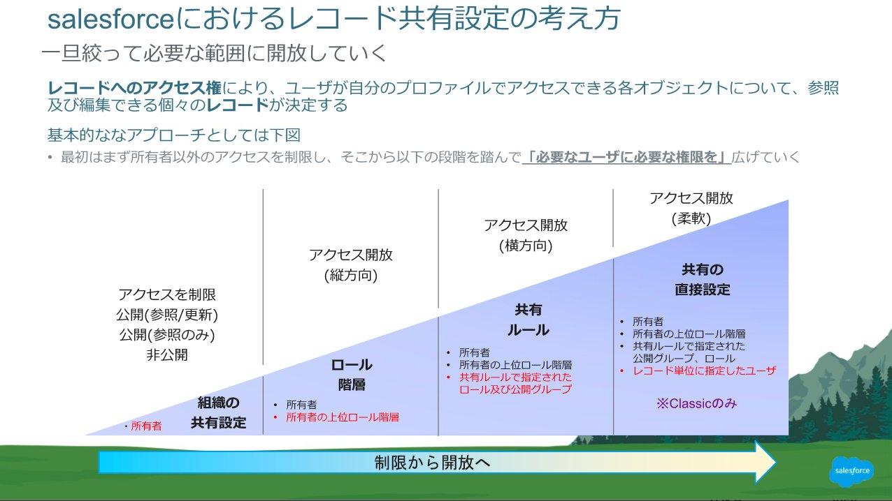 - Salesforceにあるレコード/データで、全員が見ても良いものと特定の部署のみに公開したいものなど、情報を見せる範囲を制限する方法