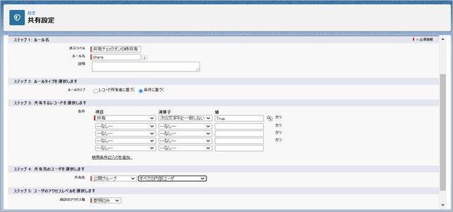 共有ルールは、レコード所有者やレコードタイプ、特定の項目値などの条件に基づいて共有します。