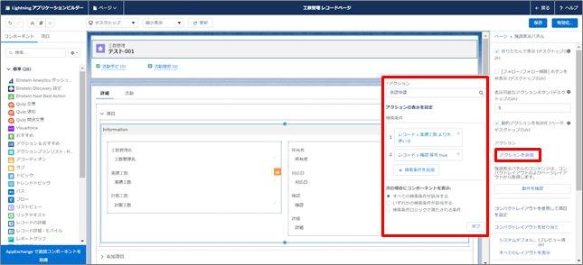 アクションの設定をすれば、条件によって表示・非表示をレコードページ上で決めることができます。