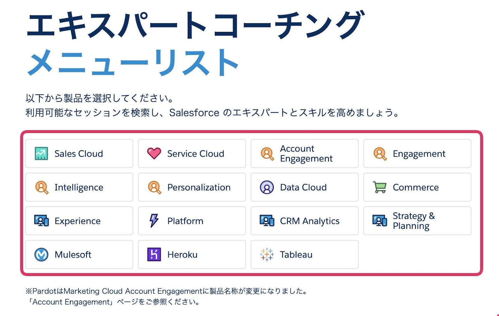 エキスパートコーチングは、お客様がSalesforceの製品からより多くの価値を得られるようにデザインされた専門的なコーチング・プログラムです。