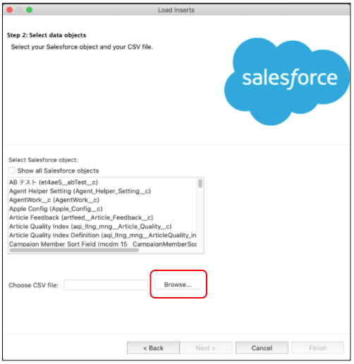 「Browse」をクリックし、はじめに作成したCSVファイルを選択します。
