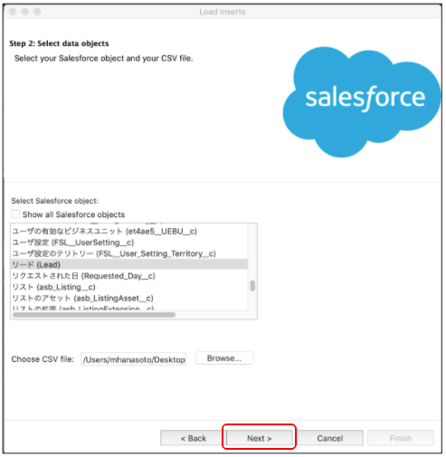- データローダーのInsert(インサート)を使用し、CSVファイル上にまとめられたデータを一括で登録する方法