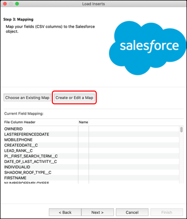 (CSVファイルのヘッダの名称と、Salesforce内の項目を対に設定することで登録を行います)