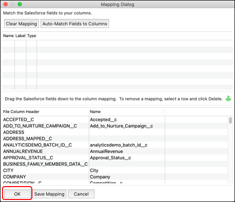 「Auto-Match Fields to Columns」をクリックします。