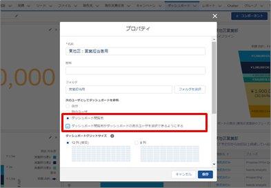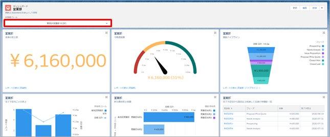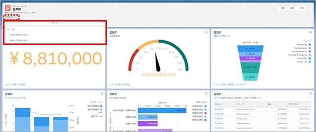 この機能を活用することで、営業地区ごとにレポート・ダッシュボードを作成する手間が省けますし、1つのダッシュボード上でさまざまな角度から営業成績を見ることが可能です。