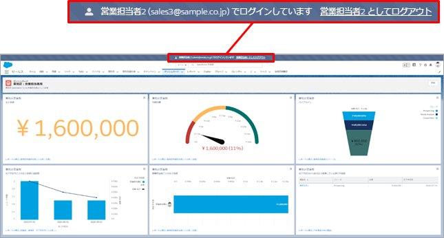 それでは、東地区営業部の営業担当者2に代理ログインして、ダッシュボードがどのように表示されているのか確認してみましょう。