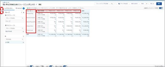 ・行を[フェーズ]、列を[商談所有者]でグループ化