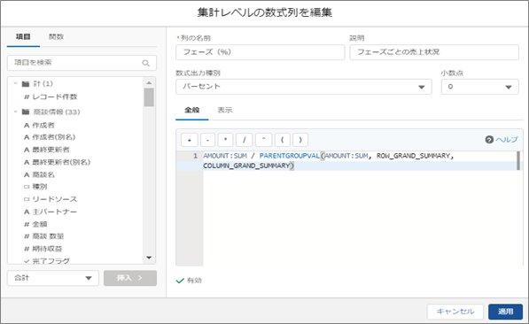 - 集計項目など、数式を使ったレポートの作成方法
