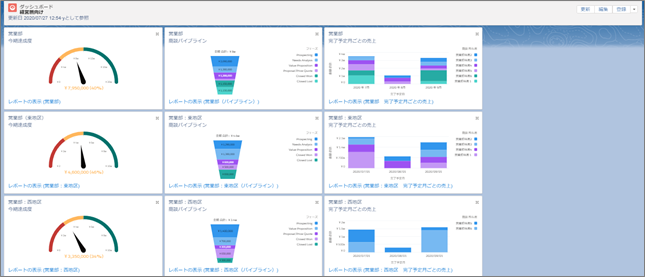 今回は営業部全体、そして各営業部の状況を確認することができるダッシュボードを作成しました。