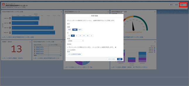 これなら[更新]ボタンを押さなくても、Salesforceにログインできない状況のときでも最新のダッシュボードをメールで確認することができますね。