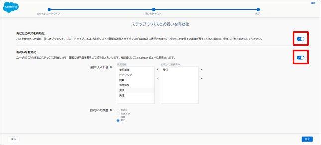 今回は商談フェーズを使用しましたが、選択リスト値の項目であれば、どのオブジェクトでもパス設定を行うことができます。