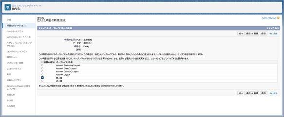 ※ページレイアウトへの追加では、項目をページレイアウトに追加する際に、どのページレイアウトに作成した項目を表示させるかを選択します。