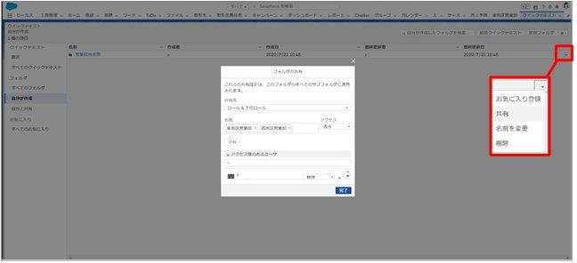 1. 新規フォルダを作成し、フォルダ名、右の[▼]|[共有]をクリック