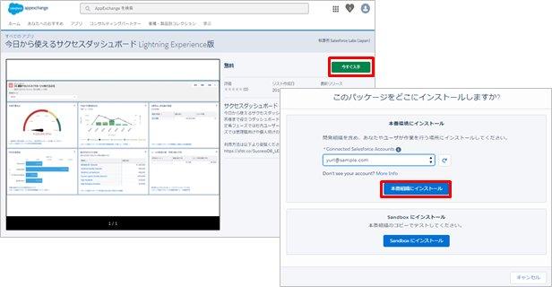 今回はDeveloper Editionに「今日から使えるサクセスダッシュボード Lightning Experience版」をインストールしてみたいと思います。