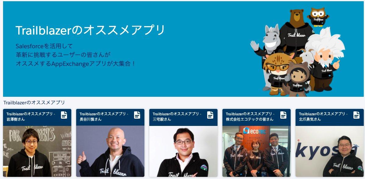 AppExchangeのサイト上では、Trailblazerのオススメアプリなど、実際の業務でよく使われているアプリが紹介されています。