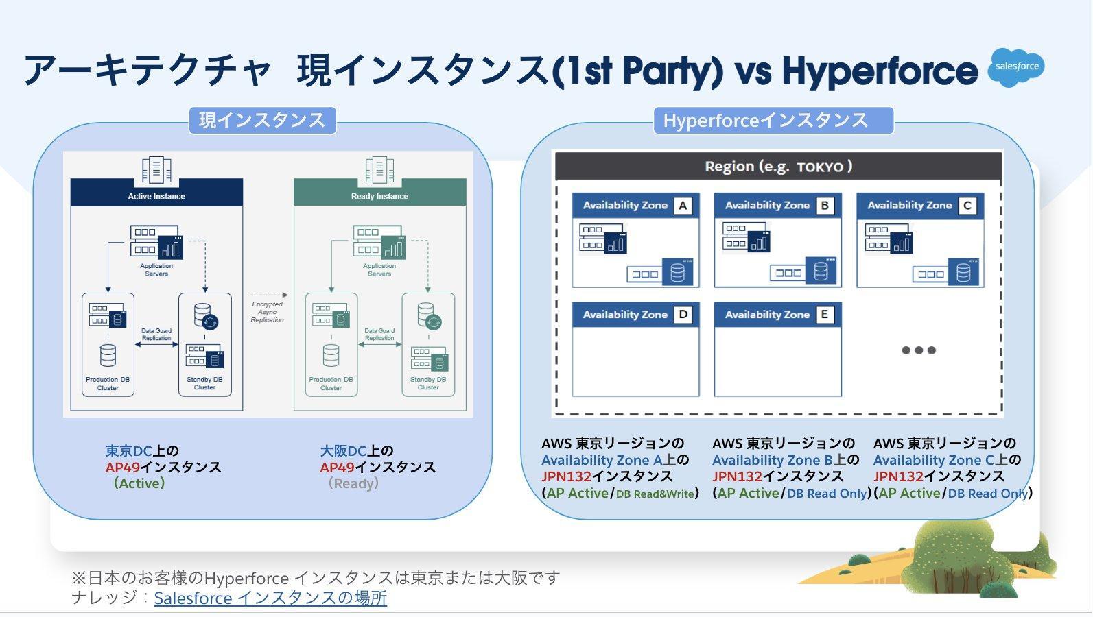 上記は、現在のファーストパーティインスタンスとHyperforceの構成を比較したものです。