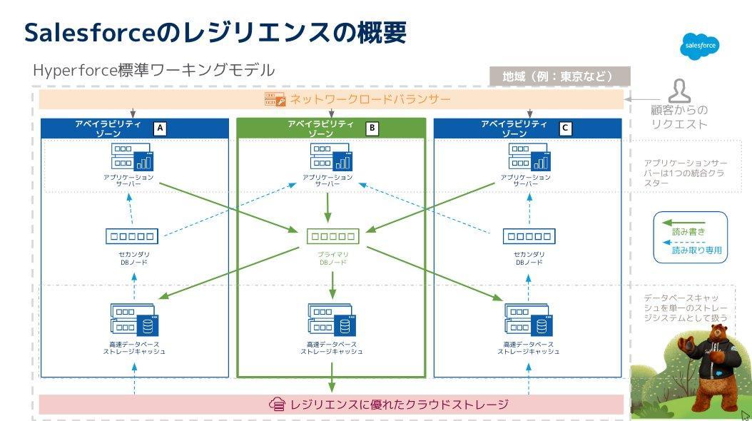 このリージョンの中に、物理的に分離された複数のAZが存在します。Hyperforceはこれら各AZ上に構築されます。また、ある組織が属する、例えばJPN132といったインスタンスは、リージョン内の複数AZによってホストされます。