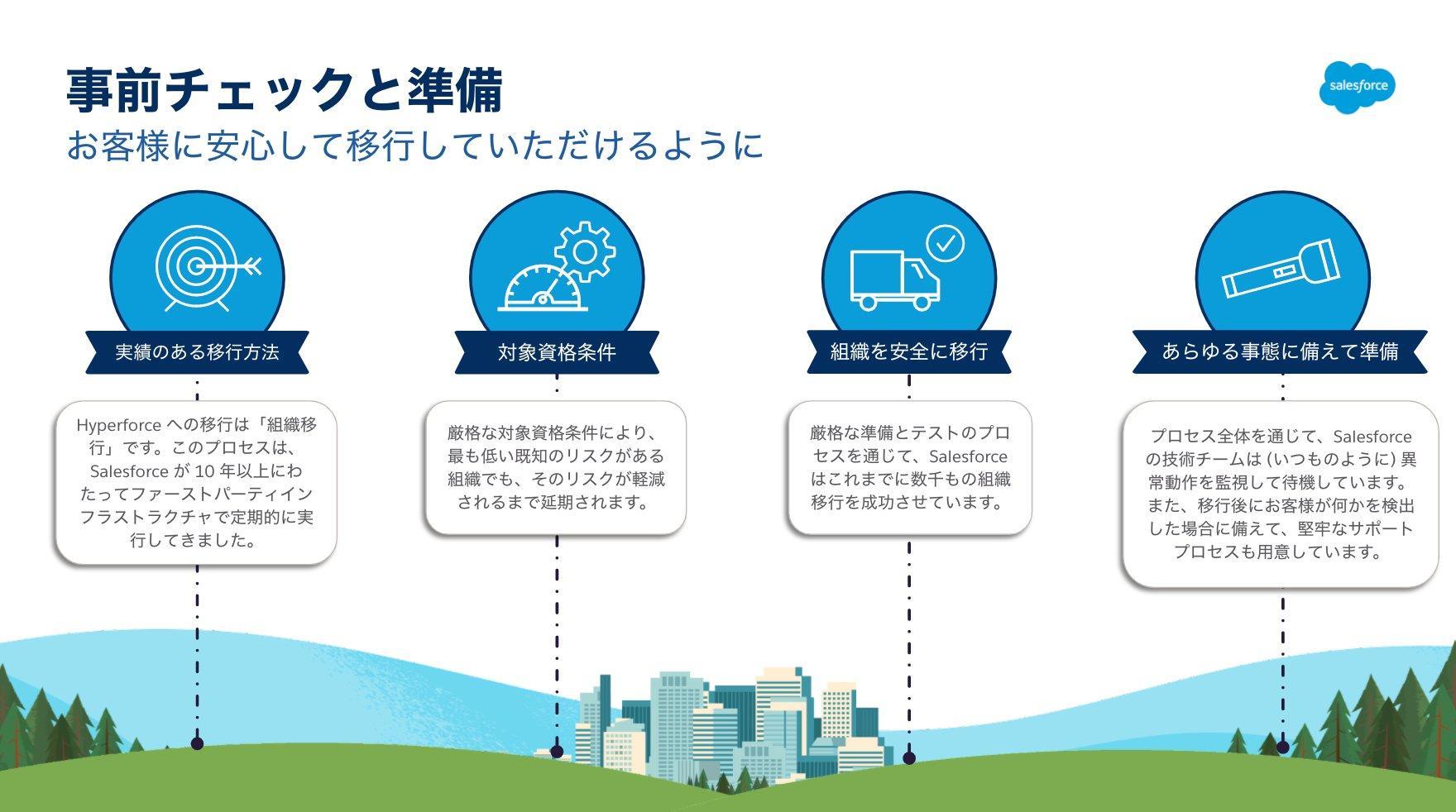 移行に向けたSalesforce側の準備は万全ですので、安心してHyperforceへ移行いただけます。