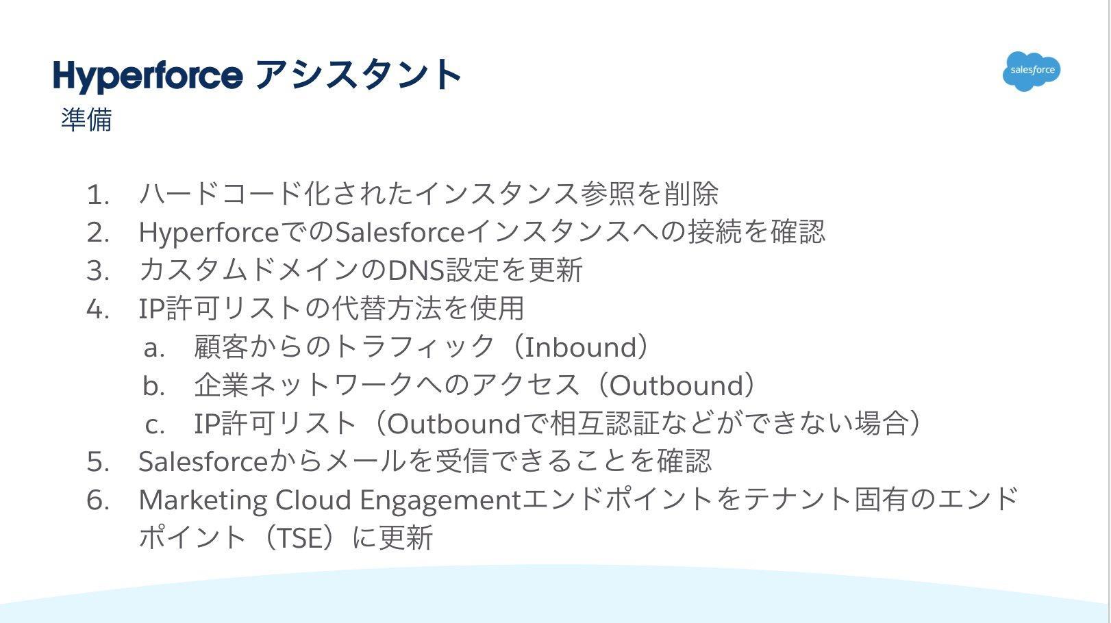 Hyperforceへの移行に際して お客様にご確認頂きたい内容と推奨事項がございます。