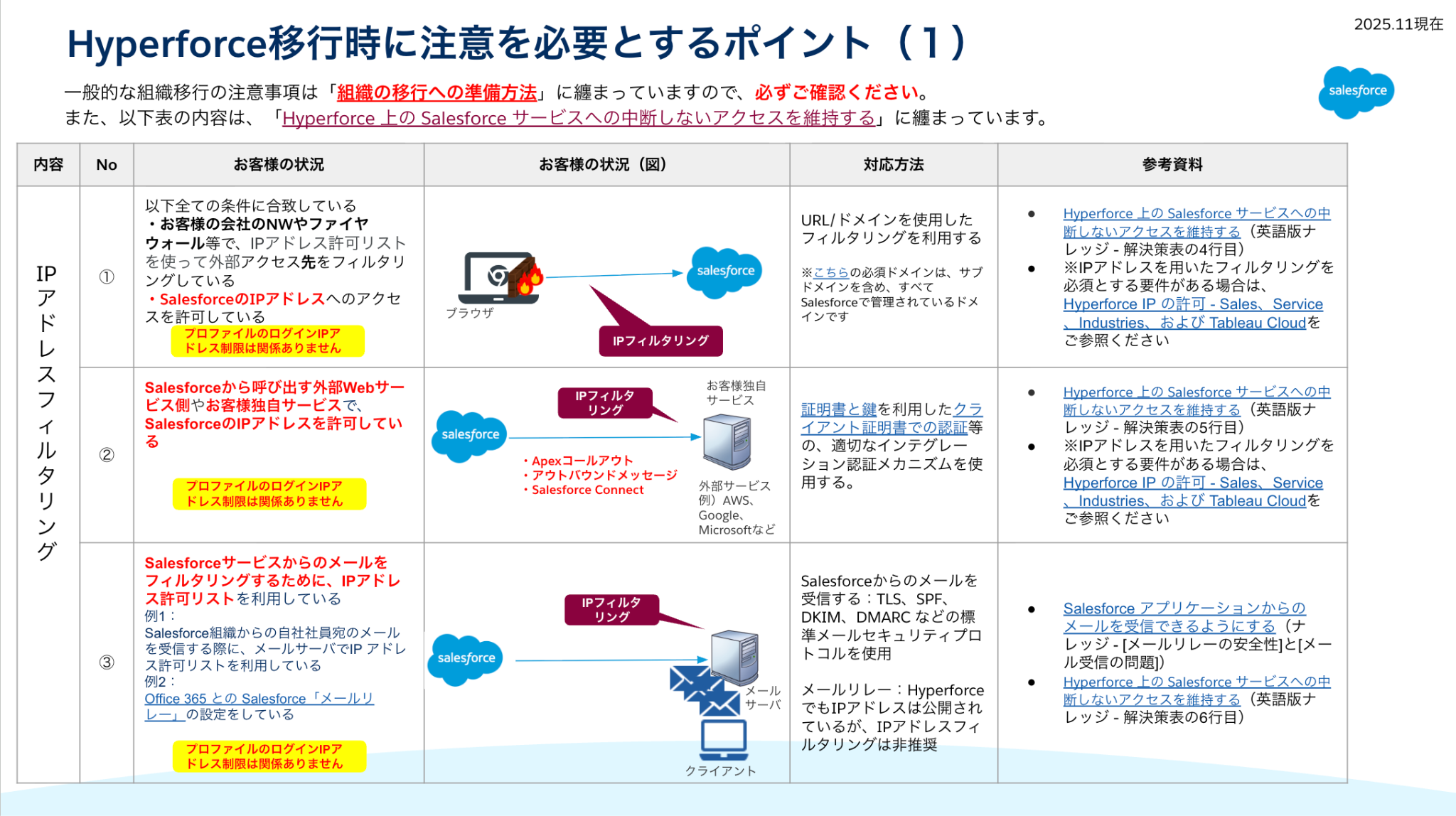 - 2025/11/19 Hyperforce の IP アドレスをダウンロード可能である旨追加