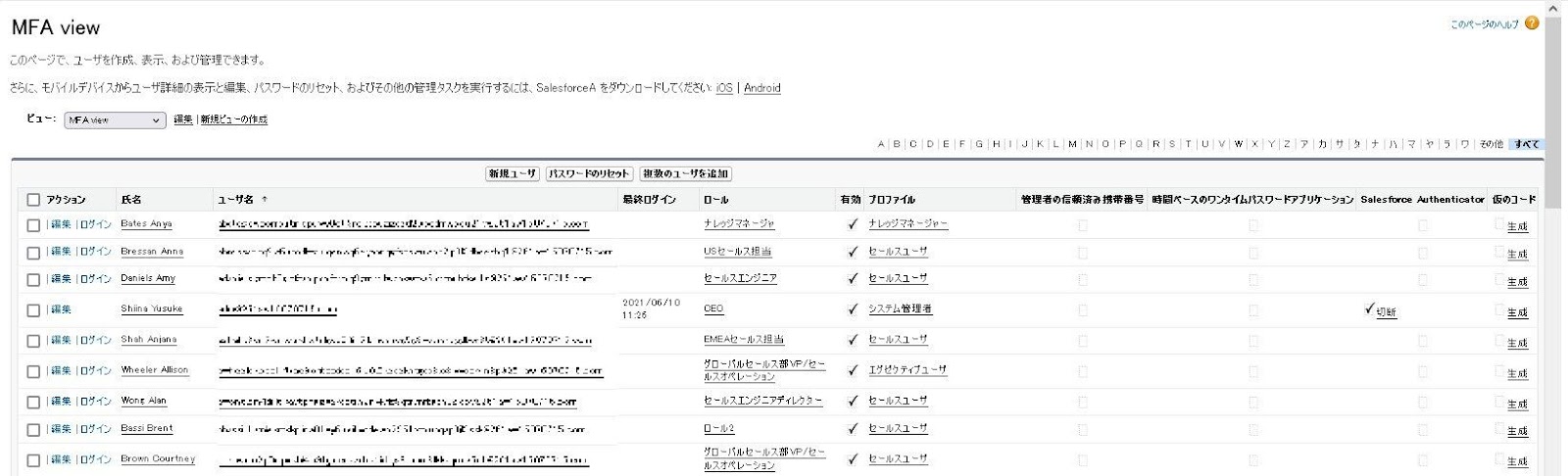 - Salesforce Labs の MFA ダッシュボードアプリケーション