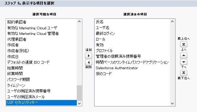 必要に応じてリストビューの[編集]をクリックし、“U2F セキュリティキー”を “選択済みの項目” へ追加をお願い致します。
