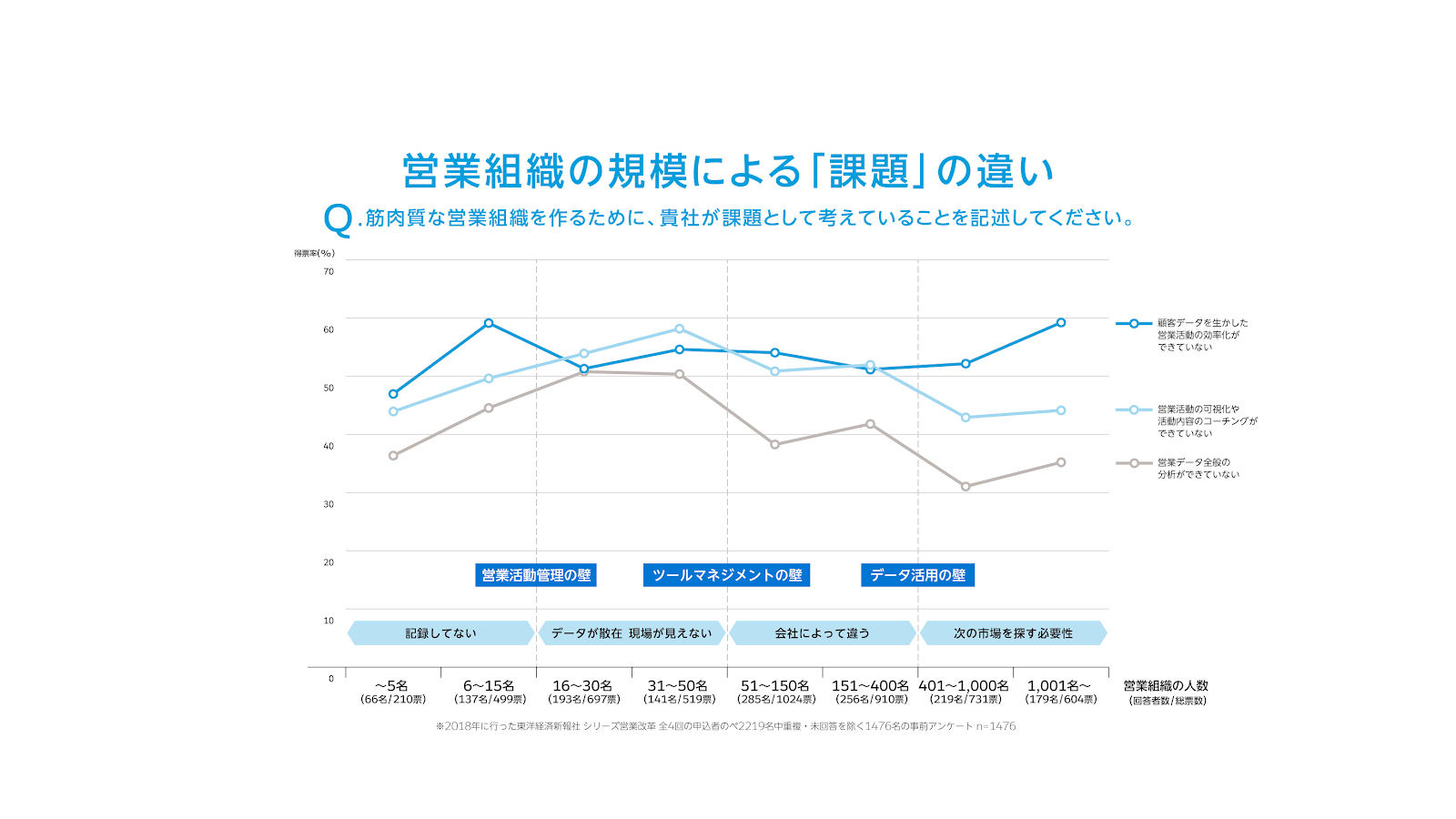 営業組織の規模によって異なる課題感 ― データの収集と活用