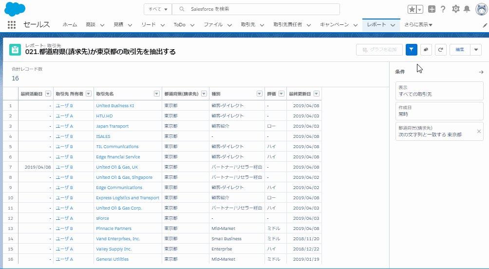 4.表示条件を「都道府県(請求先)」が「東京都」のものとします