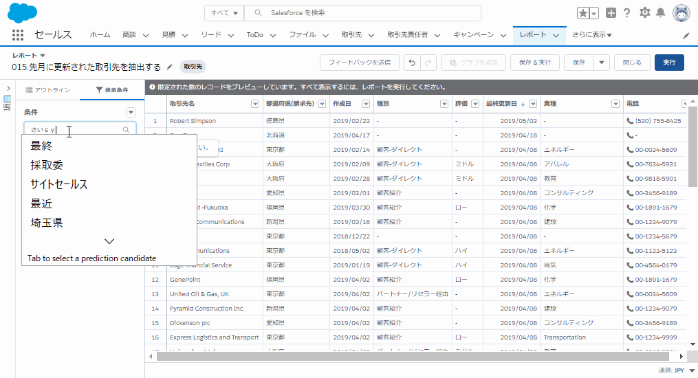 3.レポートタイプ「取引先」を選択します