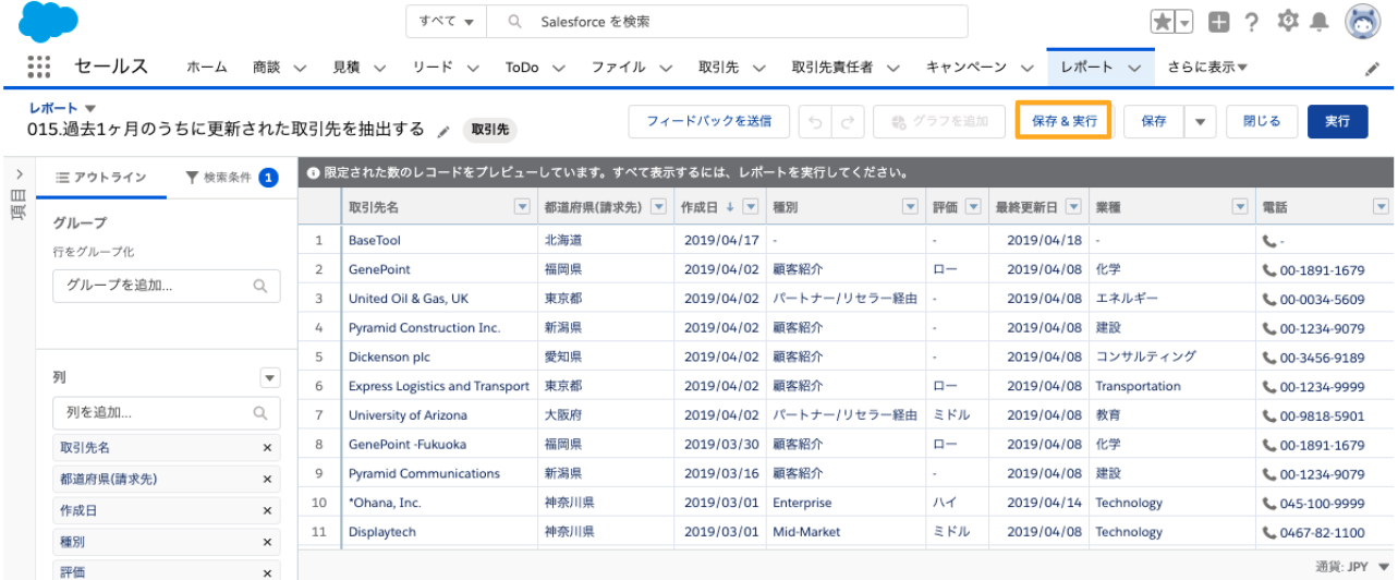 5.[保存&実行]ボタンを押下します