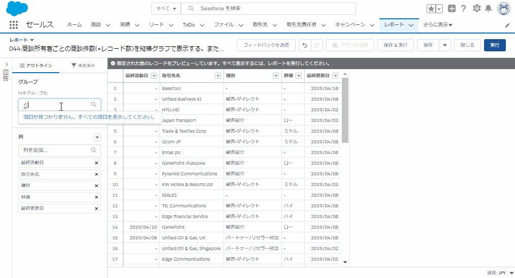 [アウトライン]より、[グループを追加]にて「取引先 所有者」と入力し、選択します