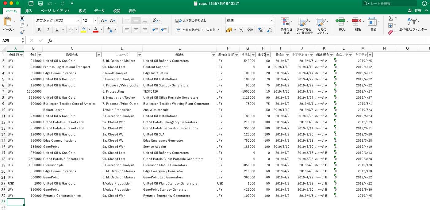 取引先所有者で取引先をグルーピングする。実行したレポートをExcel形式でエクスポートする