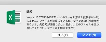 参考情報)Excel にレポートをエクスポートする際「ファイル拡張子が示す形式と異なります」というメッセージが表示されるのはなぜですか?