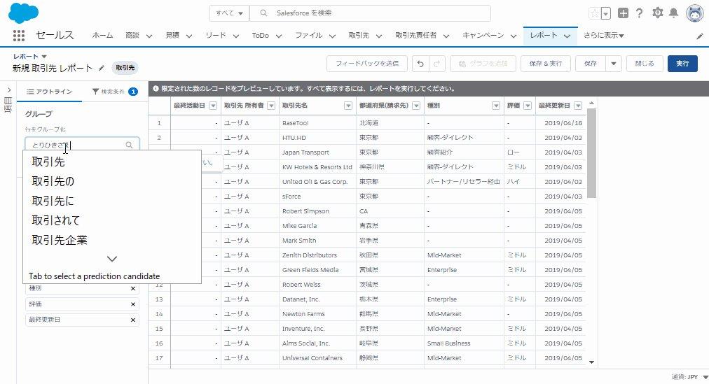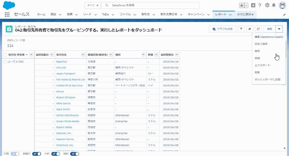 取引先所有者で取引先をグルーピングする。実行したレポートをダッシュボードに追加する