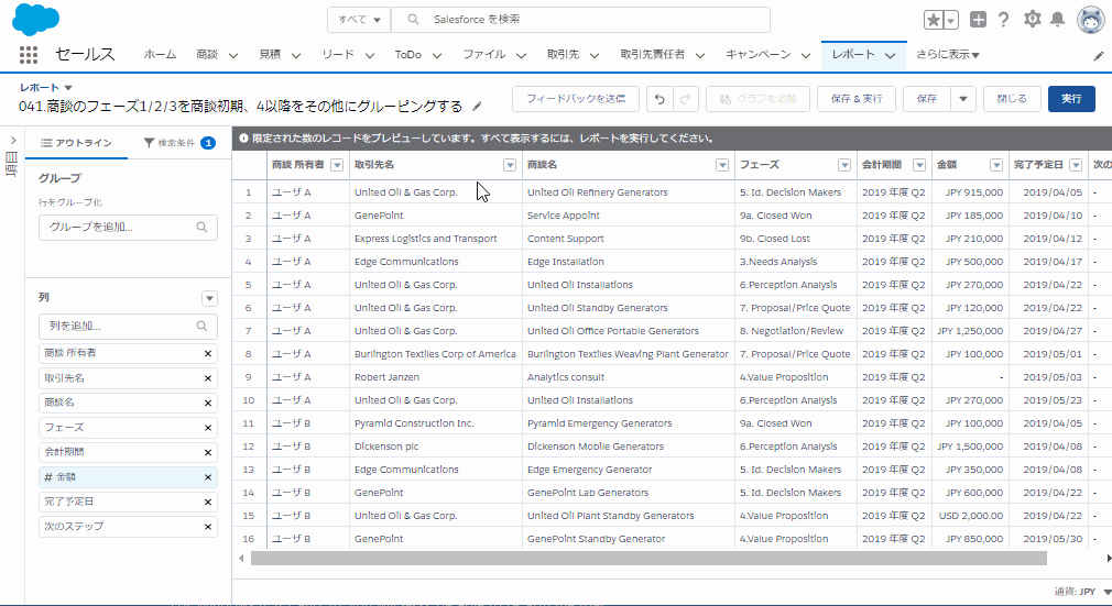 3.レポートタイプ「商談」を選択します