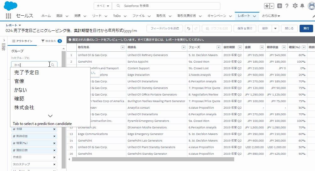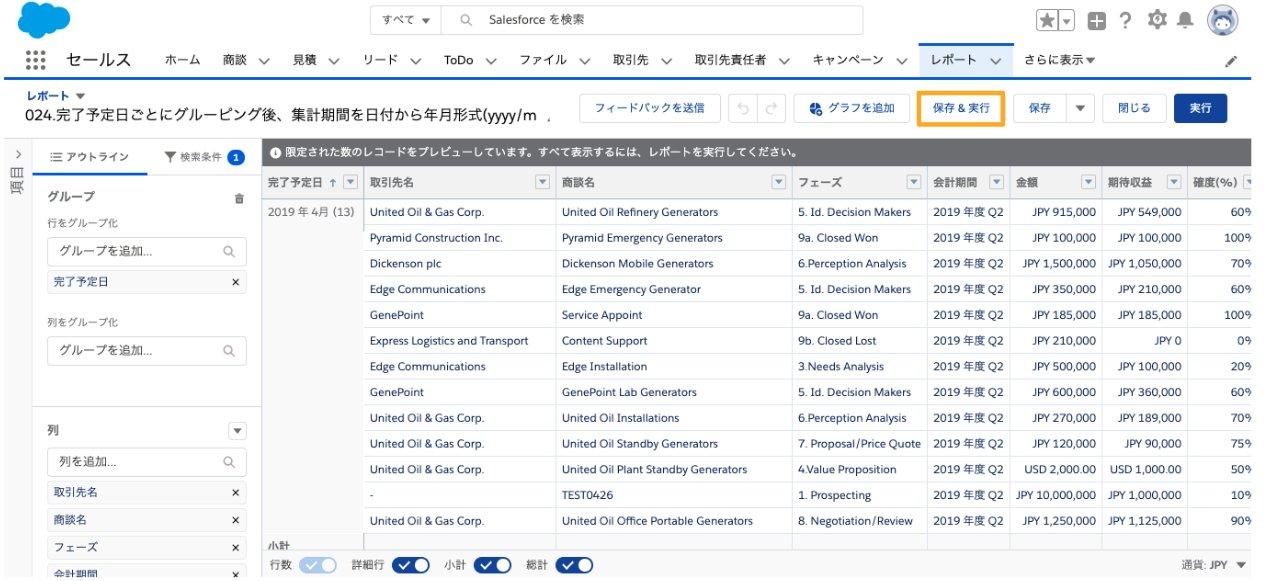 完了予定日ごとにグルーピング後、集計期間を日付から年月形式(yyyy年mm月)に変更する
