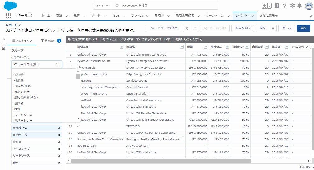 3.レポートタイプ「商談」を選択します