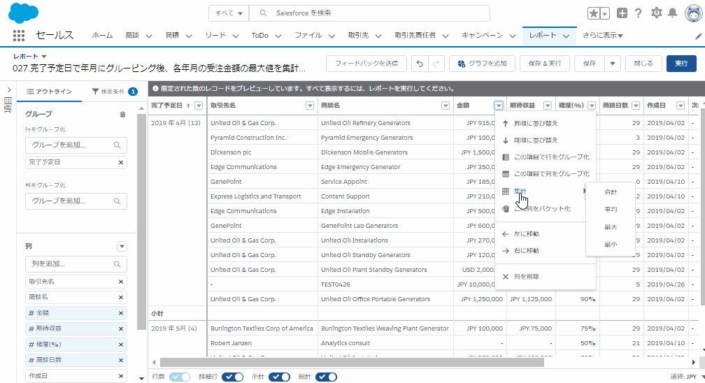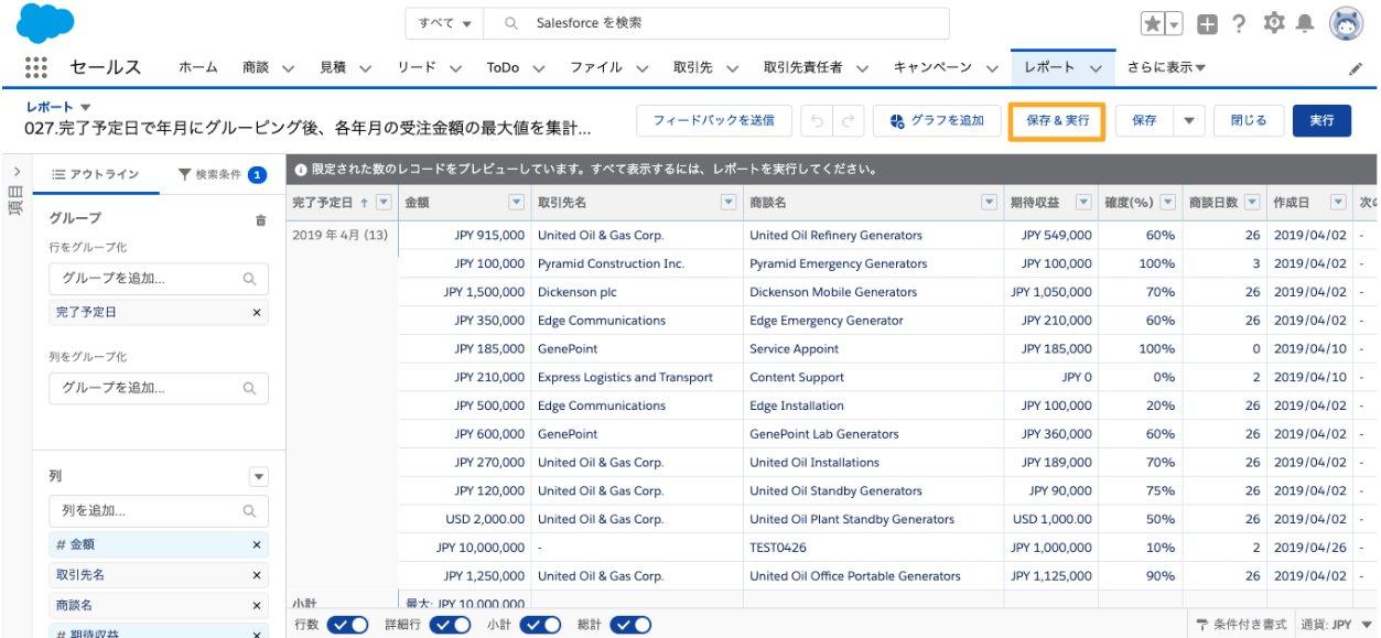 完了予定日で年月にグルーピング後、各年月の受注金額の最大値を集計する