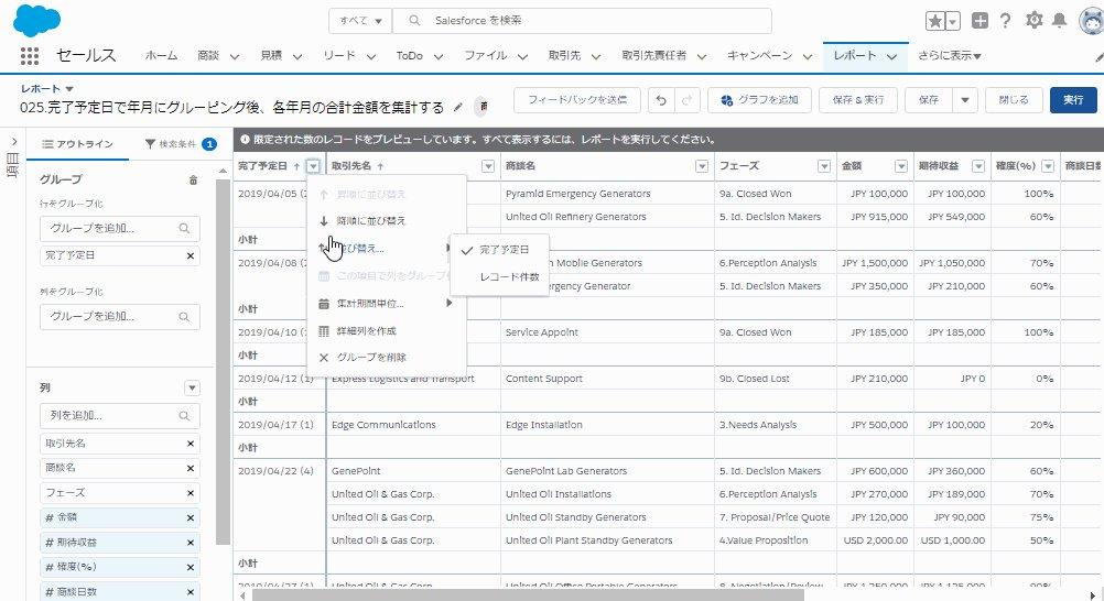 4.[グループを追加]にて[完了予定日]でグルーピングします
