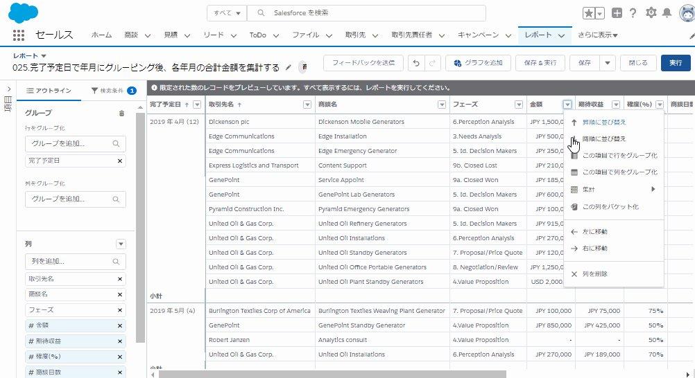 完了予定日で年月にグルーピング後、各年月の合計金額を集計する