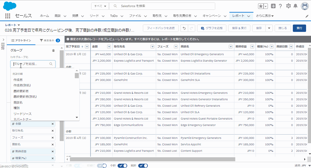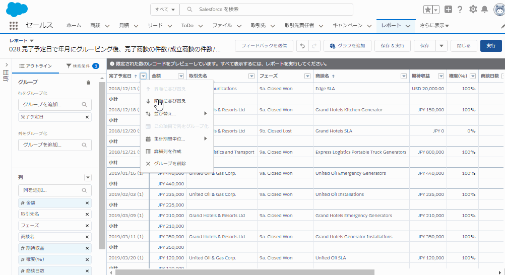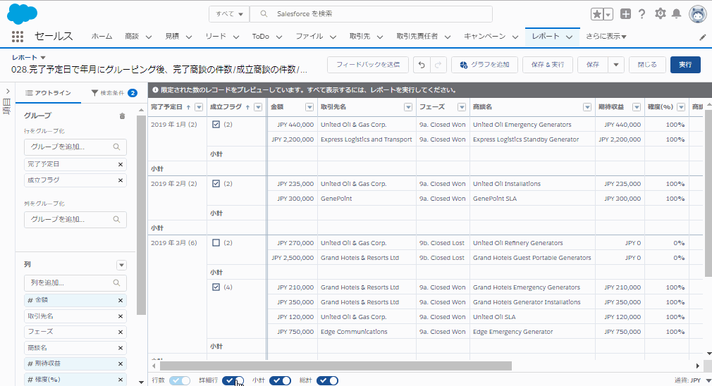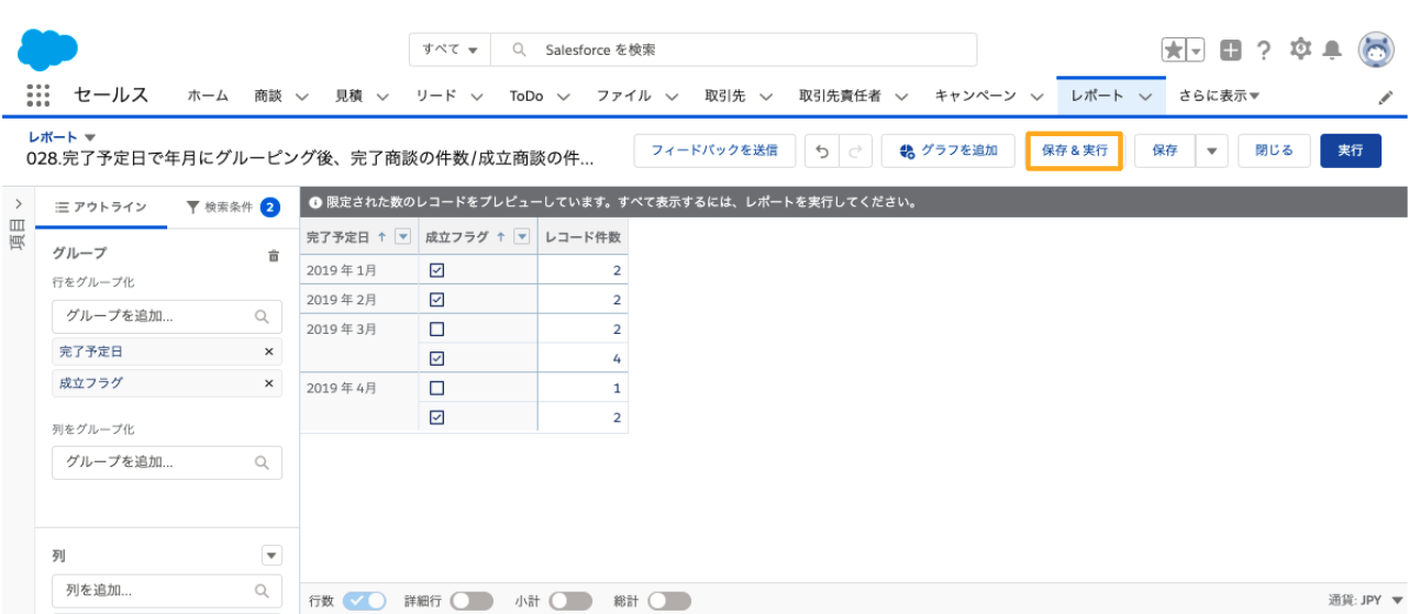 5.完了フラグを条件抽出に用いて完了商談のみ抽出します