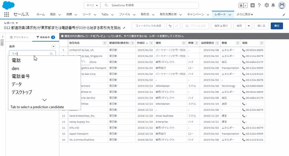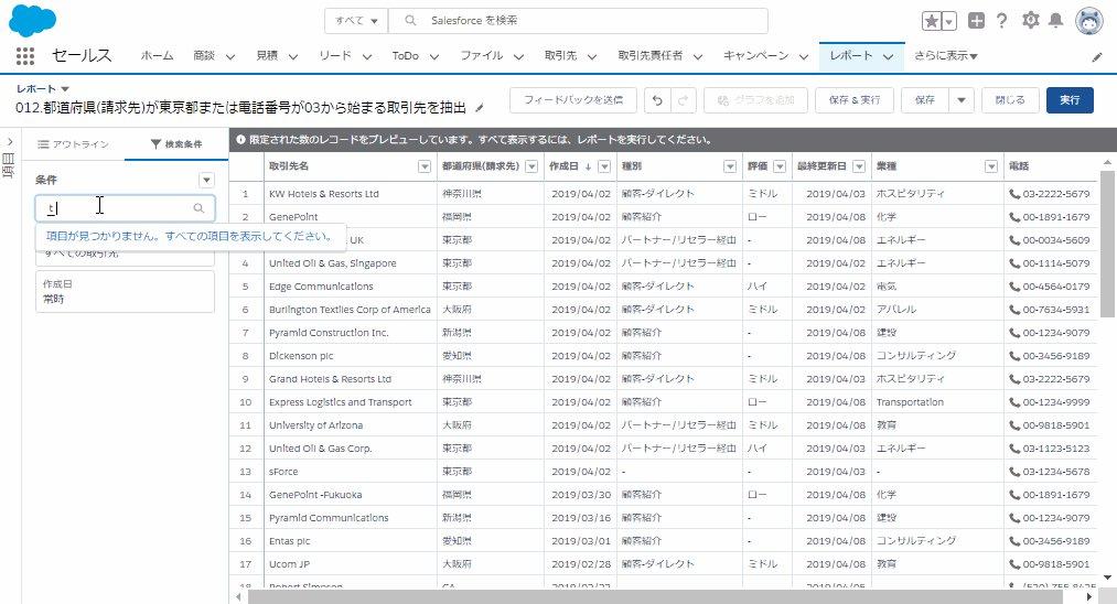 [検索条件を編集]にて演算子|次の文字列と一致する、値|東京都 として[適用]をクリックします