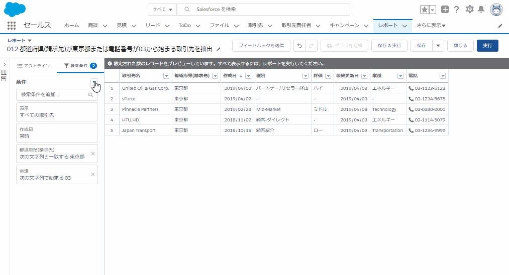 4.表示条件を「都道府県(請求先)」が「東京都」のものとします