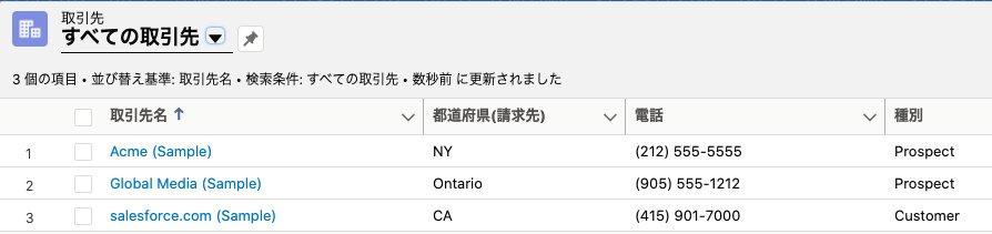 Salesforceのトライアル組織には、以下のように“(Sample)”と記載された初期データ(サンプルデータ)が入っています。