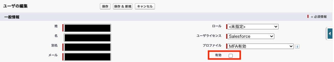 - Salesforceではユーザを削除することはできません。代わりに[無効化]や[凍結]を行います。