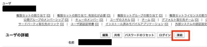 こんな時に使えるのが「凍結」です。凍結をしておけば、あなたがエラーの原因を確認(必要に応じてサポートへ問い合わせを)している間、そのユーザがSalesforceにログインできないようにすることができます。
